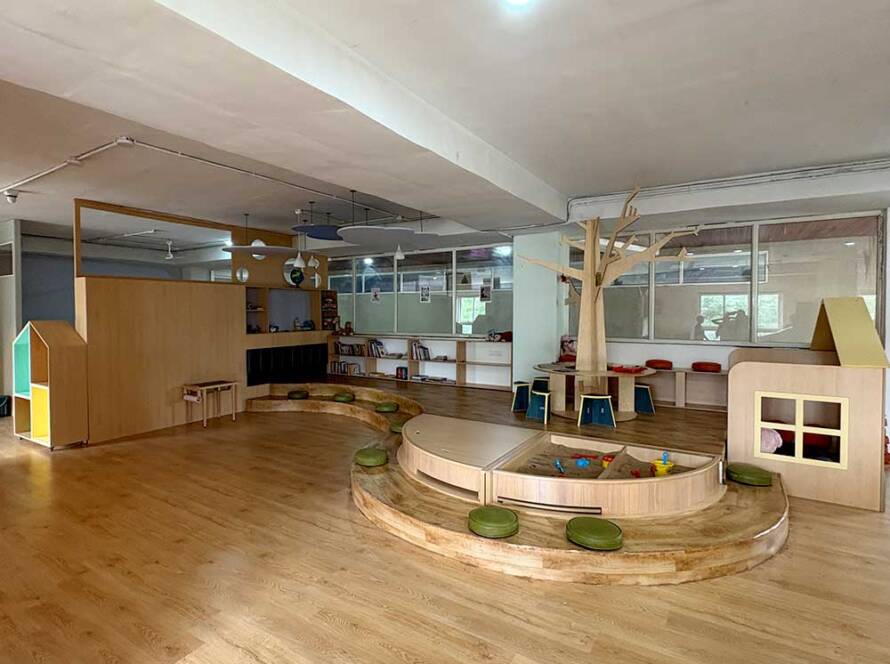 - Each classroom features an interactive wall and playful nooks that encourage exploration.