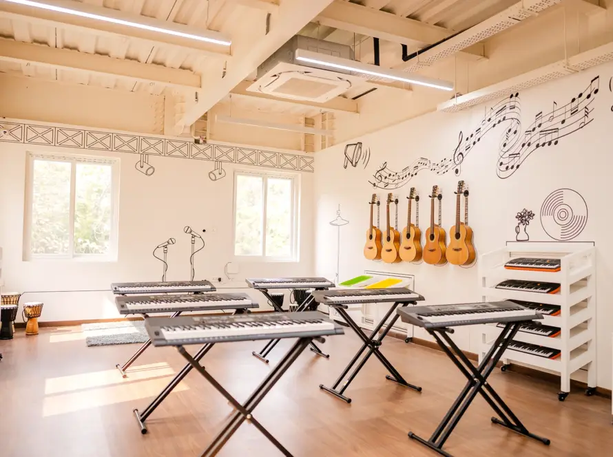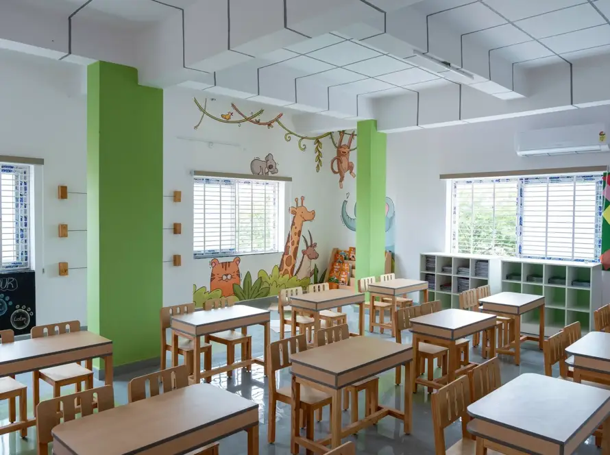 Our interiors are meticulously crafted to act as the 'third teacher.' Every material, color, and layout is chosen to stimulate creativity, focus, and a sense of well-being.